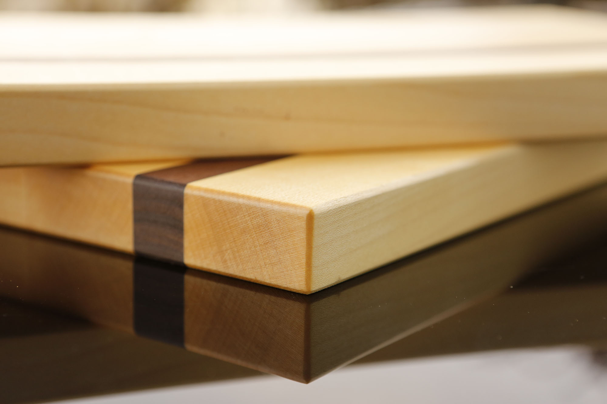 Die Frühstückbretter 2.0 aus Ahorn sind etwas größer als die Standardbretter und haben eine Einlage aus amerikanischer Nuss, welche wie ein schönes Design-Element wirkt. Die Bretter haben die Maße von 30*20*2,5cm, wobei die Einlage aus amerikanischer Nuss 2cm breit ist.